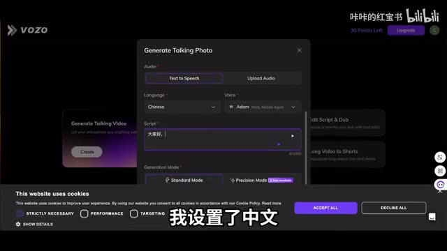 是欧洲。博主的特色在于它的a i音频,而且适配口型毫无违和感,可以以假乱真。最近小红书上涌入了一堆洋人,几乎所有的博主都在发视频的时候都会附上双语字幕。但model的功能可远远不止制作双语字幕。目前核心主打的功能有两个,一将视频翻译成其他语言并适配口型,二直接生成带配音的视频。接下来我们来看第一个功能,生成talking video说话视频。