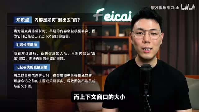 不过即使拥有这样大的窗口,也不能完全解决a i记忆的问题。那么问题主要出在哪里呢?首先是信息滑出的问题。就比如如果你正在读一本很长的小说,当你读到后面的章节时,前面的细节可能就记不太清楚了。a i也面临类似的问题,当新的信息不断的输入的时候,旧的信息就会被挤出窗口。