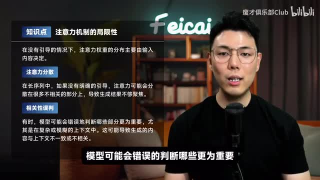 不过注意力机制也面临一些限制。比如,如果上下文太长并且没有明确的引导,注意力可能会被分散在不相关的部分上。模型可能会错误地判断哪些更为重要,尤其在复杂或者模糊的上下文中,这可能导致生成的内容与上下文不一致或者不相关。所以输入有效的提示词对大模型进行引导至关重要。