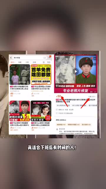 现在有很多人付费想要复活老照片,每单单价基本是十块左右,几分钟一条视频不简单吗?第二个佐糖只需要将老照片上传,就可以上色变高清。