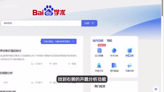第二步,验证选题,百度学术开题分析。打开百度学术,找到右侧的开题分析功能,输入刚刚确定的三个关键词,点击开始分析,查看关键词的研究趋势、相关文献数量和热门研究方向。