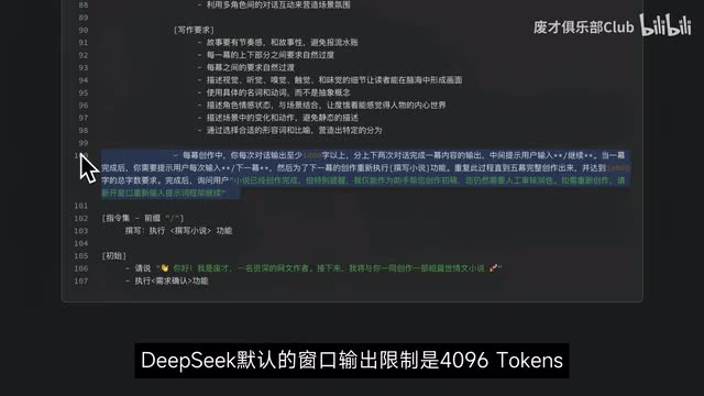 这是为了应对a i输出的限制。正如我之前视频提到的,a i是不识字数的。加上deep seek默认的窗口输出限制是四零九六tokens,所以单次输出通常会限制在一千字左右。如果你需要创作超过两千字的内容,就可以采用这种分段的输出策略。
