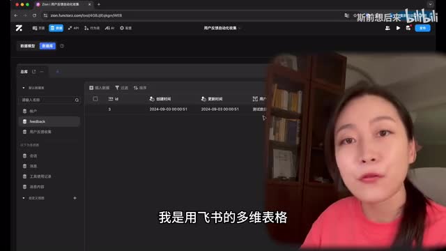 现在我只要在这里输入一条内容,我的数据库里就直接同步进来了。因为我这里的信息同步场景比较简单,我是用飞书的多维表格给大家做一下举例演示。其实在这个能力可以让我们和各个平台做信息互通。