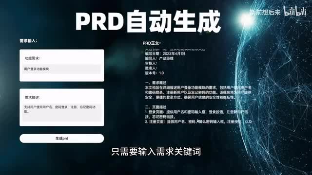 我用自己做的ai工具,把每天需要人工操作一个小时的工作量直接自动化完成,工作效率直接提升了十倍不止。半年前为了上班摸鱼,我用zn做了一个p r d自动生成器,只需要输入需求关键词,就能自动生成一篇需求文档。视频发出去之后呢,有很多人在后台私信,我也想做自己的ai产品,但不懂ai不会代码能不能行?可以很负责任的告诉大家,是完全可以的。