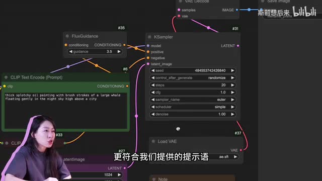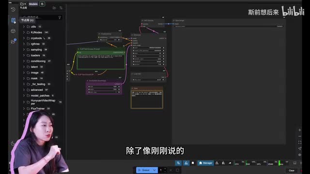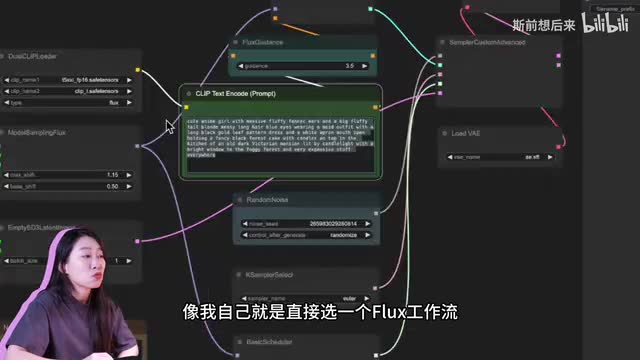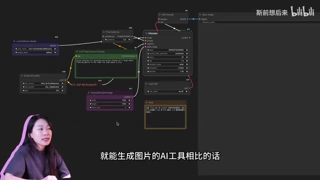 每个节点都这样串联起来,就形成了这样一个使用这个模型生成图片的工作流。所以对比我们之前用的像v journ这种只要输入提示词就能生成图片的ai工具相比的话,它的灵活性会高出特别特别多。所以如果你动手能力非常强的话,我们在这里看到的所有内容都可以自己搭。你可以在这样现成的工作流里面往里面加节点,也可以从零选取节点自己搭。