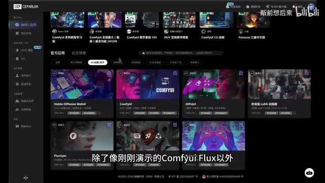 你之前想做,但是因为ai工具满足不了的大场景绘画都可以实现了。又或者呢你可以用它做商品图,模拟室内设计图或者电商图,利用a i去做模特服装的更换,商品背景更换等等这类商业场景应用。而且在这个平台上,除了像刚刚演示的coffee ui flux以外,像sd web u i laura这些大热的ai模型,以及各种大语言模型、开发工具、视频工具、音频工具应有尽有,都是可以直接使用的。因为很多这种开源工具虽然好用,但都是需要自己安装、下载、配置好才能使用。
