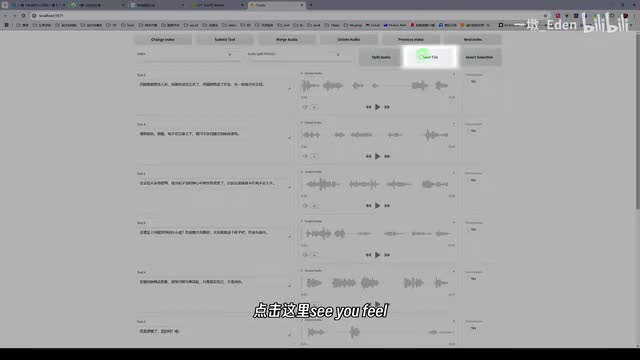 语音降噪也是看这里的状态好完成了,然后直接开始下一步,一切都默认了,也是中文。这步完成以后,直接点击这一步,它会也打开一个新界面,就是核对它分割的这些音频的文字,核对一下大概的内容。没有错以后,点击这里see you feel,然后关闭它。再点这里,关闭它。下一步。点这里。然后在这里输我们需要训练的一个模型名称,然后剩下的都不用动,默认即可直接开启这个按钮,一键三连三连三连三连。