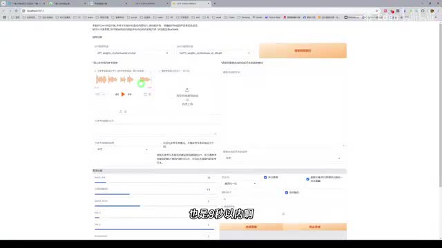 这里看到进程已经结束了啊,然后再点击这里进行下一步微调训练。这些参数就默认啊,直接点击第一个按钮训练这里显示训练完成以后,再点击这个按钮,这里也显示训练完成以后,基本上这个模型就算练成功了。怎么使用它呢?点击这里推理刷新一下路径选择,找到我们刚才的甄嬛零二。在这里我们直接选择这个e五,这里也找到我们甄嬛零二,选择零八启用并行版本推理,然后开启推理,它也会打开一个新的界面,这一步需要一个三到十秒的参考音频。我们找到刚才那个文件夹output,找到一个s开头的文件夹。这个文件夹里放的都是我们刚才那条长音频,分割成九秒九秒九秒左右的一个短音频。我们随便找一个拖进去。