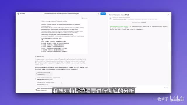 当你点击下载。它就会以m d结尾的一个文件存储到你的电脑里。但是目前就右边的这个文档是不能直接在上面编辑的。第四个案例,我们来看深度分析特斯拉股票。用户说我想对特斯拉股票进行彻底的分析,包括一二三四五六七这七个方面。接下来他得到这个指令之后。拆解任务。搜索、收集、资料分析等等。它就会提示用户说啊,我已经做好了。