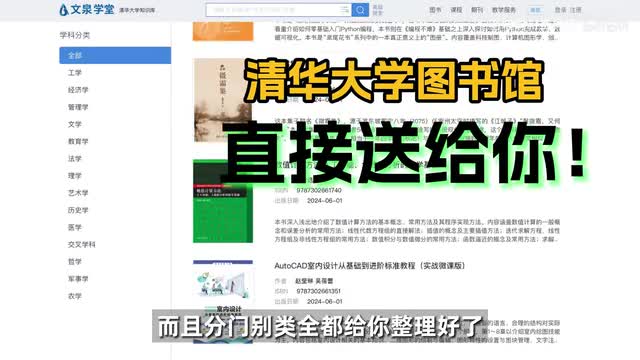 第一个温泉学堂,清华大学图书馆直接送给你,而且分门别类全都给你整理好了让你轻松查找,高效精准的学习专业知识。