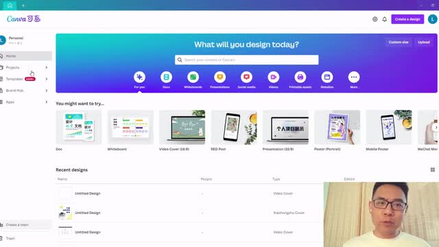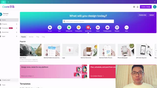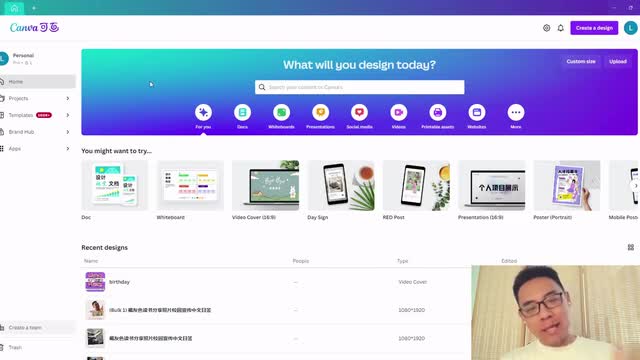 那你不用担心学不会,因为我会从最简单的这个实操的方法来开始,然后循序渐进的去一步一步的去讲解。好,那准备好了吗?那好的,那我们现在呢就首先先要打开我们的canvas工具这个软件。那或许你以前没有用过canvas这个软件,canvas呢是国际版的,这个软件的名字在咱们国内呢它叫做可画。那canvas呢它不仅可以去做平面设计,也可以去做视频的编辑,也可以去做p p t设计等等的。