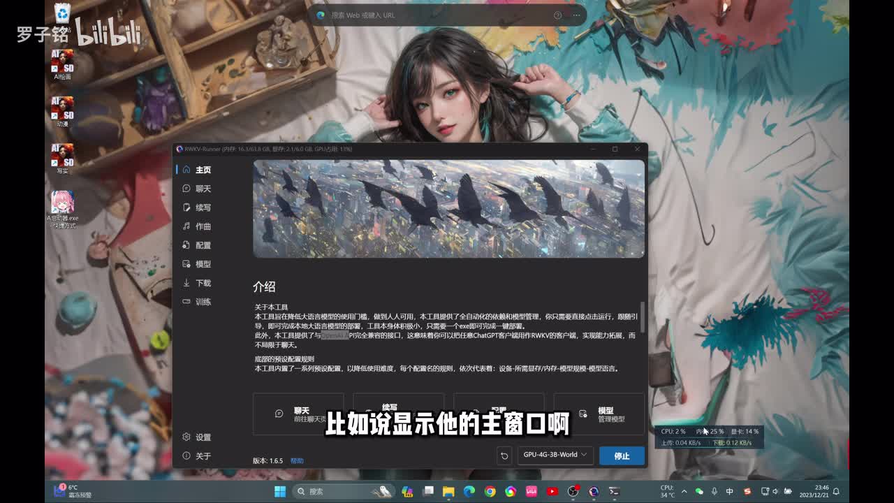 他能聊天,也能写小说,也能作曲。而且重要的是它不需要连外面的网络就可以使用,正常的一个本地网络就可以使用。而且它的速度嘎嘎的快,配置只需要两g的显卡显存就可以了。那么废话不多说,我们直接开始今天的教程吧。