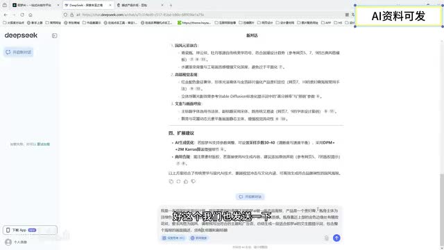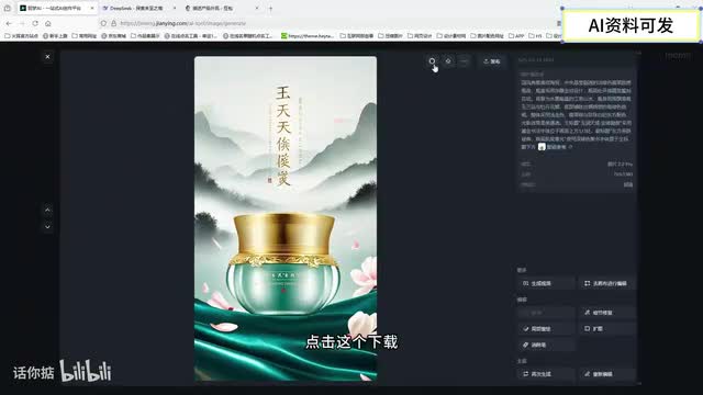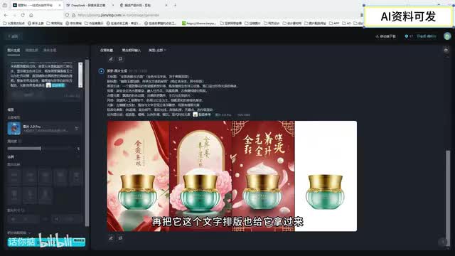然后我们再回到deep sig。deep sig的话我们可以先给他一个身份,告诉他我是一个资深的平面设计师,我要去做一张产品海报,产品是一个贵妇膏,大概是一个国风的风格。那如果是这样的话还太少了,我们可以生成一下,这里我们最好还要加一个什么呢?就是说把我们刚刚这个瓶身什么什么给他。复制过来。这样的话,deep fake它出来的。