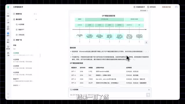 第二是全网搜,不像其他的a i搜索工具,它不只是把搜索结果简单归纳总结了一下,还可以出了详细具体的图鉴、时间轴、树状图、数据图表等等等等。结果一目了然,看起来非常的清晰直观,用了就回不去了。然后是文库的自由化布。举个例子,比如说你在做一个项目需要整合多个信息来源。