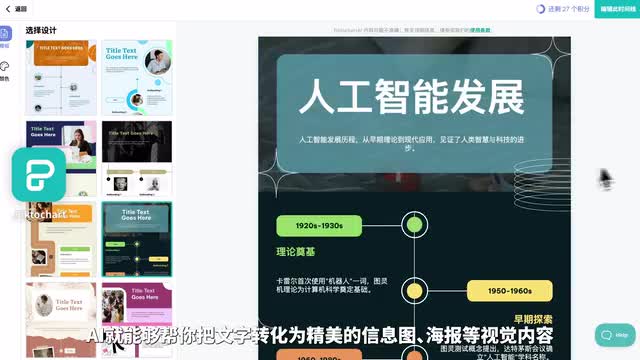 那今天和大家分享七款超实用的ai工具,把你从脏活累活中拯救出来,让ai帮你做p p t、做海报、做图表、做研报,新的一年彻底告别加班。第一个take chat只需要输入文字,ai就能够帮你把文字转化为精美的信息图、海报等视觉内容,不管是做课程表、招聘内容、知识分享,或者是有些模板、社交媒体的内容,只要你需要做信息可视化,它都能够帮你快速搞定。设计和审美真的很绝,很适合老师们整理知识点。hr做培训,自媒体博主做知识分享。