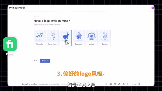 最后一个是一款a i logo生成工具,fever logo maker. 当你在主业之余想搞搞副业,做做账号,想好品牌或者是账号名称之后,却不会设计logo,就可以用它快速生成logo,只需要四个步骤,初步生成之后就可以对logo进行微调,比如说颜色、字体、图文排版的方式,还可以预览logo的产品设计图。那所有的这些操作短短几分钟就可以搞定。要是专门找一个。师来设计,也不知道要花多少成本和时间。