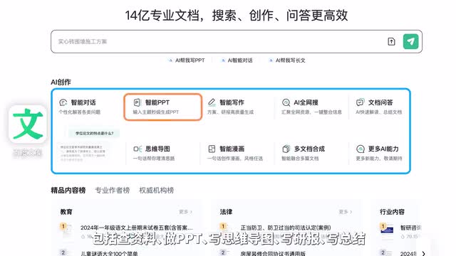 而且呢它的模板风格多到让你眼花缭乱,看到合适的就可以直接套用。需要a i做信息图就用pick to chat。第二个百度文库,一个平台即可解决大部分的办公学习需求,包括查资料、做p p t、写思维导图、写研报、写总结、画漫画、画绘本等等等等。首先智能p p t二零二五年了,哪个打工人还自己做p p t啊?文库呢支持一句话生成p p t或者上传各种资料来生成p p t。