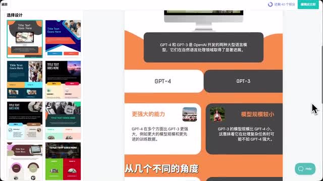 市场人做宣传物料。推荐有对外沟通和传播需求的朋友们用起来,而且使用呢真的很简单。比如说你输入一个简单的主题,像是g p g四和g p g三的比较,你to check就会根据这个主题自动帮你打开脑洞,从几个不同的角度列出对比内容,或者呢我们复制粘贴课程信息,哎,它分分钟就可以生成非常好看的课程表。不满意呢,细节还可以随意调整,再也不用自己费老大劲或者找设计师了。