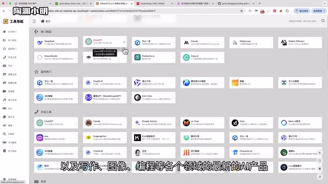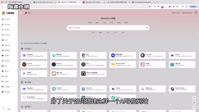 除此之外呢它还有一个a i新闻板块。好了,关于如何搭建这样一个a i导航网站,我们就介绍完了。大家如果有需要可以自己部署一个。感谢大家的观看和点赞支持,我们下期视频再见,谢谢。