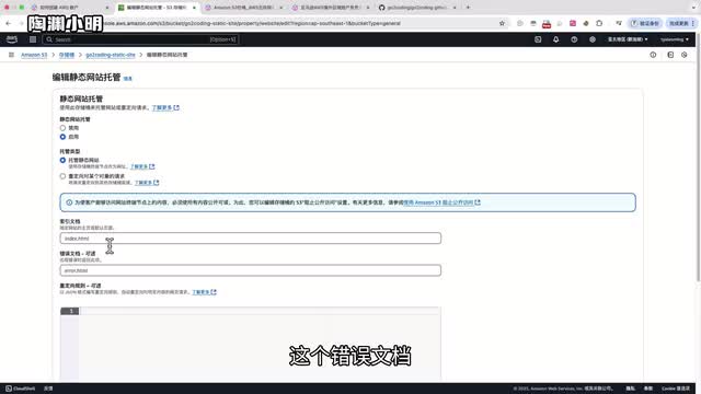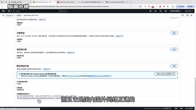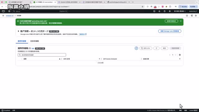 比如我们选择新加坡,接着点击创建存储桶,输入存储桶桶的名字,然后这些设置呢都给它保持默认。点击创建。然后打开我们刚才创建的这个存储桶。点击这个属性。然后点击编辑这个静态网站托管选项。