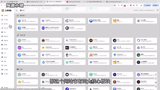 这是我免费部署的一个a i导航网站。在这里你几乎可以找到所有好用的ai工具。而且呢这个网站完全开源,任何人都可以轻松的去搭建。那这个网站它有四大核心板块,第一是最新的a i工具汇总,比如写作、图像、音乐、编程等等。第二是优质的a i开源项目,第三是a i学习资源导航。
