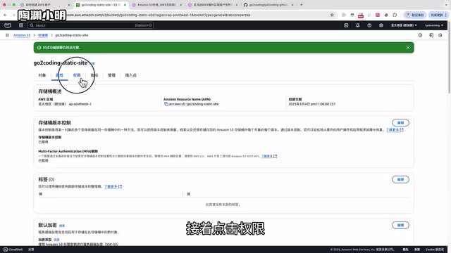 我们这个网站呢全部上传上去的话,超出限制的费用呢大概在零点零六美元,也就是四毛钱左右,这几乎可以忽略不计了。而且呢它这个消费是一次性的,以后呢基本不会再产生费用了。文件上传完成了。接下来我们来看一下我们这个网站的部署效果。打开存储桶,点击这个属性选项。