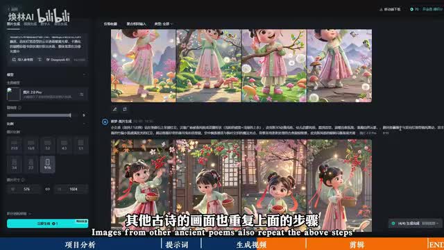 然后点击生成启蒙a i就会给我们生成好四张。图片供我们选择,接着其他古诗的画面也重复上面的步骤进行生成。随后把生成的图片进行下载保存,接着就是生成视频了。