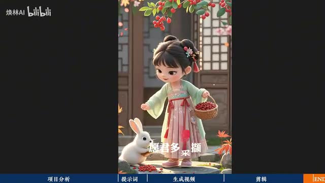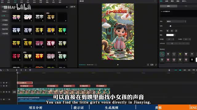 当然了你也可以自己去配音做原创。关于配音可以直接在剪映里面找小女孩的声音,然后添加字幕。转场的基础操作,一条启蒙古诗视频就制作好了,我们来看看效果。