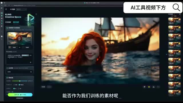 我当时其实是用了这个海外的可林来训练这个烧美人鱼的人类魔性,为什么呢?因为当时考虑到国内的克林,它会有一些限制,就比如说其实这个小美人鱼她是穿了一个小贝壳的,但是可伶呢就是识别觉得旧图片不符合一些要求。热论的话现在只支持可零一点五。那我们点击纹身视频,在这里选择你的人物。