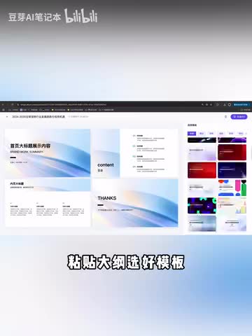 注意这里一定要选择官方创建的智能体,输入p p t主题后,马上生成层次分明的大纲,并且系统还会自动生成几个符合主题的p p t模板。