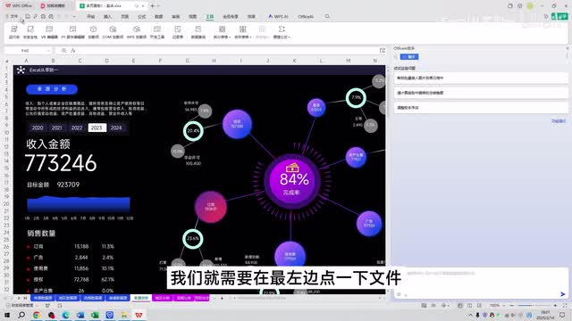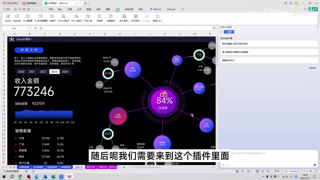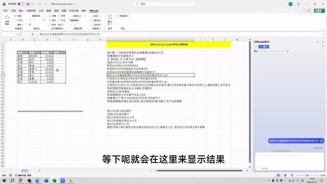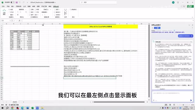 这个呢就是助手窗口。我们会在上方count office a i在这里做一下点击。如果你在右侧不显示窗口,我们可以在最左侧点击显示面板,它就会显示了,之后就可以在当前的窗口中来提问。a i就会给出结果,会在这里显示一些案例。