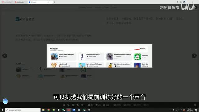 最重点的是a i翻唱功能,在主页内我们可以看到热门语音这个板块,可以挑选我们提前训练好的一个声音。里面有非常多的歌手,包括卡通动漫的形象以及各类游戏的声音。