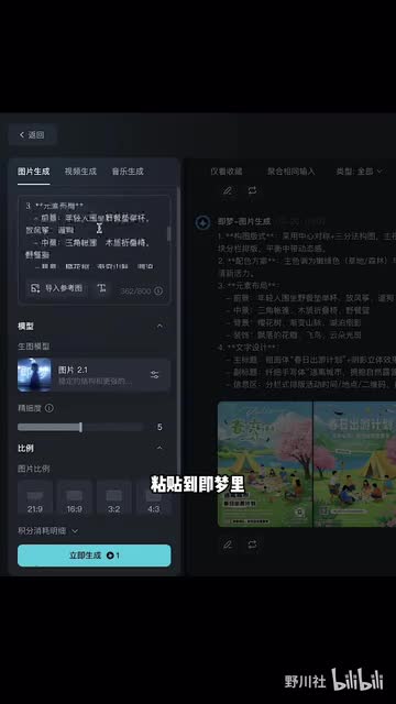 第二步,复制提示词,粘贴到集梦里,生成模型。选择二点一可以一次性生成几十张来挑选合适的海报。