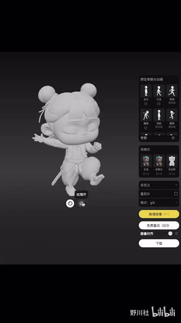 第三步打开trip a i把生成的三d图片做到trip a i里,点击生成一个三d模型就完成了。绑定谷歌后,可以让它动起来,还能导出模型文件到c四d或者blender里面修改,照着速度迭代下去,十年建模师已经哭晕在路上。
