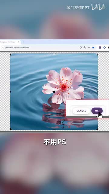 最后呢给第二页p p t添加平滑的切换动画,就能做出这种破格飞出的效果啦。那如果你拿到的图啊自己带有背景,也只要去这个网站,不用p s也能把樱花抠出来。然后呢再用第四张图片裁剪,把原来的图裁大一点,再插入几个p p t自带的圆角矩形。