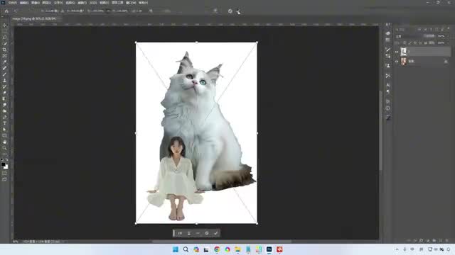 ok这个时候我们control加勾拷贝出来。好,来到我们的猫咪图片当中做同样的一个操作,在上方选择主体。好,control加勾直接扣出来。好,将猫咪的一个图像和我们的人物图像进行一个结合,简单的进行一个组合。啊,将我们的一个图片导出。