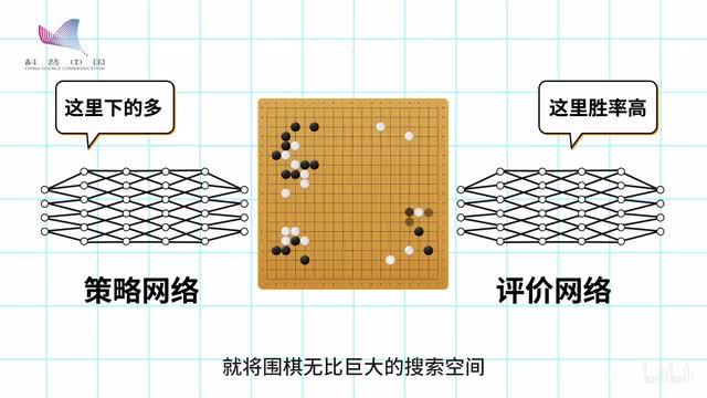他会凭借学到的经验给出当前棋局下在每一个点落子的概率,那些概率低的点会被他忽略,概率高的点则被纳入考虑范围。而另一个被称为评价网络的大脑,则会根据经验评估在每一步落子之后黑棋或白棋赢棋的机会。