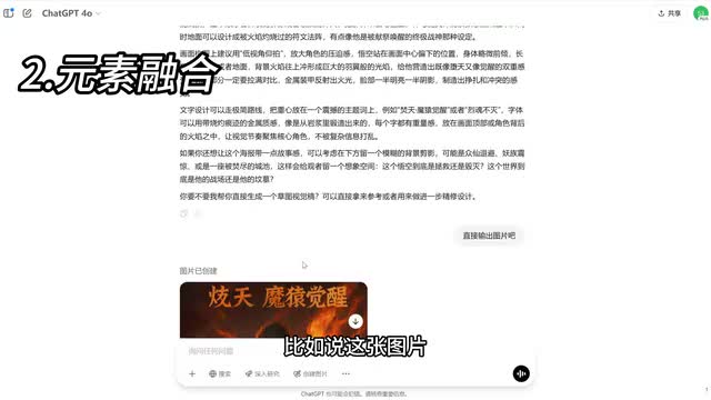 比如说饱和度呀、亮度啊、对比度呀、图片的比例啊,这些都是可以调整的。还有元素融合,就是把两张图片上面的元素融合在一张图里面。比如说这张图片是我将王者荣耀的地狱火和黑神话,悟空结合做出来的海报,也是一句话可以搞定的。前面演示的这张图片也是一样道理,效果也还不错。