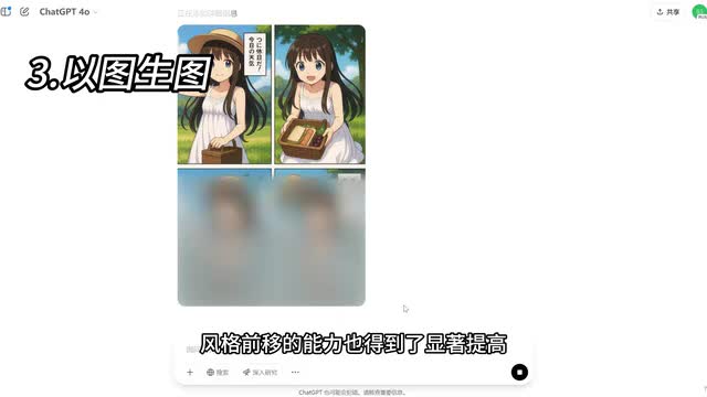 这个理解知识并绘制生图准确表达能力真的是太强了。详细指令比如说我制作了一个小猪佩奇的表情包,我先让g p t给出思路,随后进行绘制。生图之后的六个佩奇神态迥异,每一个佩奇的表情控制的都非常好,再加上一些文字表述,一套表情包就出炉了,每一个表情的要求都可以精准控制,这个能力真的是太强了。风格迁移图像风格的迁移,这个前面演示过了,我先上传了一个我喜欢的风格图,然后让ai依据这个风格对另外一张图片进行图像迁移,效果也是还不错的。