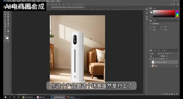 你可以看到是吧?产品图跟我们的原图不一样,所以的话我们要用我们的产品来去代替它,来这样子给它代替它代替它o k稍微给它拉大一点点。覆盖掉覆盖掉它,一定要覆盖掉它。好,那么这时候又有人说你这个产品跟这个场景虽然是对上了,但是边缘的处理效果并不好,看上去很假对吧。所以在这种情况下,我们把我们的产品重叠上去之后,再保存一下这张图片,点击储存,这里随便改一个名字保存。然后再来到stable division的图生图里面去,把我们生成好的这张图。