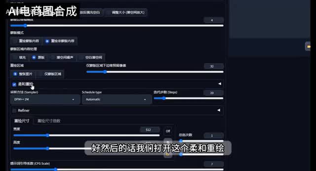 好,涂抹完之后呢,来到下面这里,我们把它的模式改为重绘妃蒙版的内容。也就是说我们蒙版涂了的这个地方,它重绘的时候不会再次去画,这样的话就能保证我们的产品的信息保存跟我们的原图一样了。好,然后的话我们打开这个油和重绘,让它的这个重绘更加的柔和,更加的接近它的这个背景。然后呢我们记得要把这个三角形点一下,把这张图片的信息适配到它现在重绘的这个尺寸里面去。好,重绘幅度决定了它重绘的时候会不会把其他地方啊重绘的这个幅度。