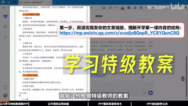 当零零后老师开始上岗整顿p p t课件round one。直接给deep sick发送这一段提示词,就能让它根据特级教师的教案和哪吒精神做结合,生成一套完整的p p t课件大纲,就能快速策划好一堂有意思的主题课,丝滑不卡顿。用d s的步骤呢,我也放在评论区啦。