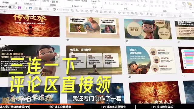 最后再从我的p p t动画库里面呢找到闪烁进入动画,用动画刷复制到不同的元素上,有趣的课件动画立马就做好了。除了这些呢,我还专门制作了一套和哪吒有关的开学p p t,以及之前做过的一些课件型p p t。有需要的话呢可以在评论区扣一,我发给你哦。