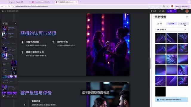 不过在伽马这里它是非常灵活的,我们可以在呃首先我们可以调整它的页面大小,在默认情况下它页面的比例可能是不统一的。你可以在这里调整成标准的十六比九模式,保证所有的页面大小是一致的。在这里可以更换背景图片,或者是调整页面布局,比如说增加或者是删除卡片的内容,如果你对这里生成的内容不满意的话,可以使用ai帮助你改写文本,或者是将这个段落改写成时间线,或者是表格的形式都是可以的。而且在这里的提示词功能中,伽马还可以支持中文输入。