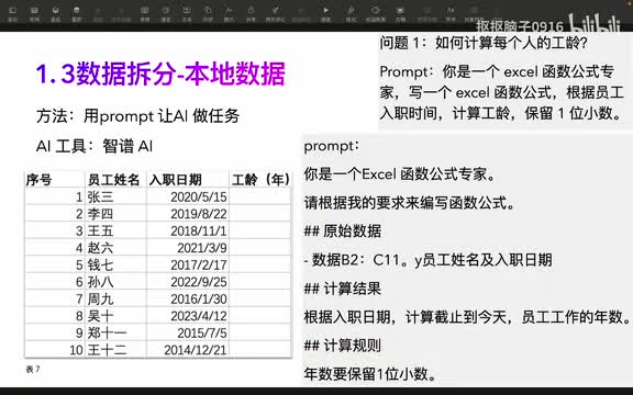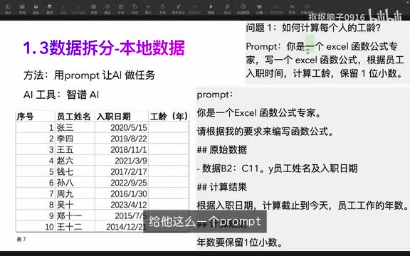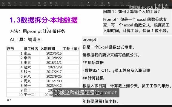 那还有一种就是。比如说老板要去给公司去发去做股权激励激励,他要统计工龄在五年以上的同事是多少。那像这种就是还是让prompt用prompt让ai做任务。但是这个部分它包含了员工个人的信息,所以他不太方便去把这个数据直接输入到大模型里。