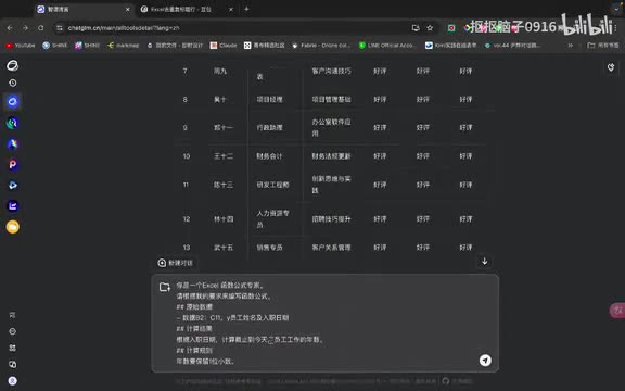 让他帮我们编写函数公式。然后给他这些数据。包括我们要的结果,员工工作年数,还有。呃,年数的。