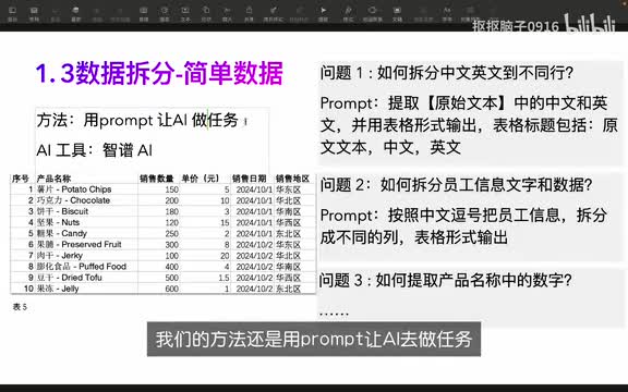 首先呢我们来看一个简单的,就比如说这种如何拆分中文英文到不同的行。我们的方法还是用prompt让ai去做任务。这次我们还是用的是质朴轻掩,我们把这个。复制下来,这不清。