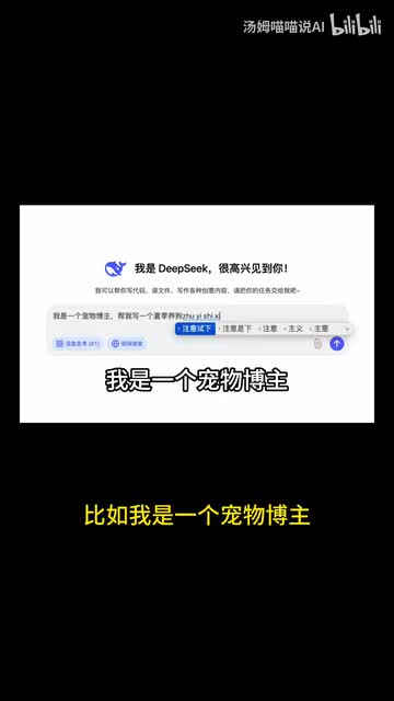 第二个,用deep sig做视频,我们还是在deep sig中输入视频创作要求,比如我是一个宠物博主,帮我写一个夏季养狗注意事项的口播文案,很快deep sick就生成了一个视频口播文案。