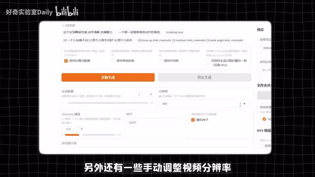 比如加入了首尾帧的功能,提前确定头尾图片,能够极大提升可控性。还有这个时间戳功能,可以通过在每行提示词的前面打上时间戳,去精准的控制动作触发的描述。另外还有一些手动调整视频分辨率及cache数值等小功能,这里就不做详细说明了。我会把一键包的地址放在评论区,大家可以自己上手体验一下。最近真的冒出来好多优秀的开源视频模型,能够看出来a i的技术真的是在以飞快的速度发展。
