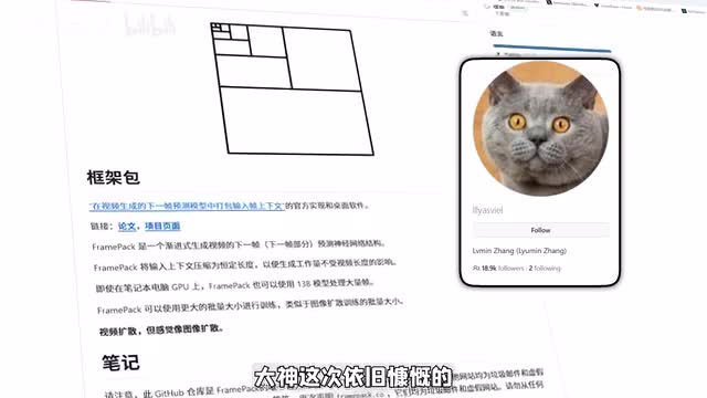 但更厉害的是啊它还能够一次生成两分钟的超长视频,最最关键的是,它还完全免费。free pack的开发者其实就是control night背后的张灵敏。大神这个名字的含金量相信不用我多说了吧。大神这次依旧非常慷慨的开源了这个模型,大家不仅可以免费使用,而且由于模型采用了独特的技术结构,配置的要求还变得非常的低显存在。六g以上的三零四零五零系显卡都可以本地部署运行,你甚至可以在一台六g显存的笔记本上跑起来啊。